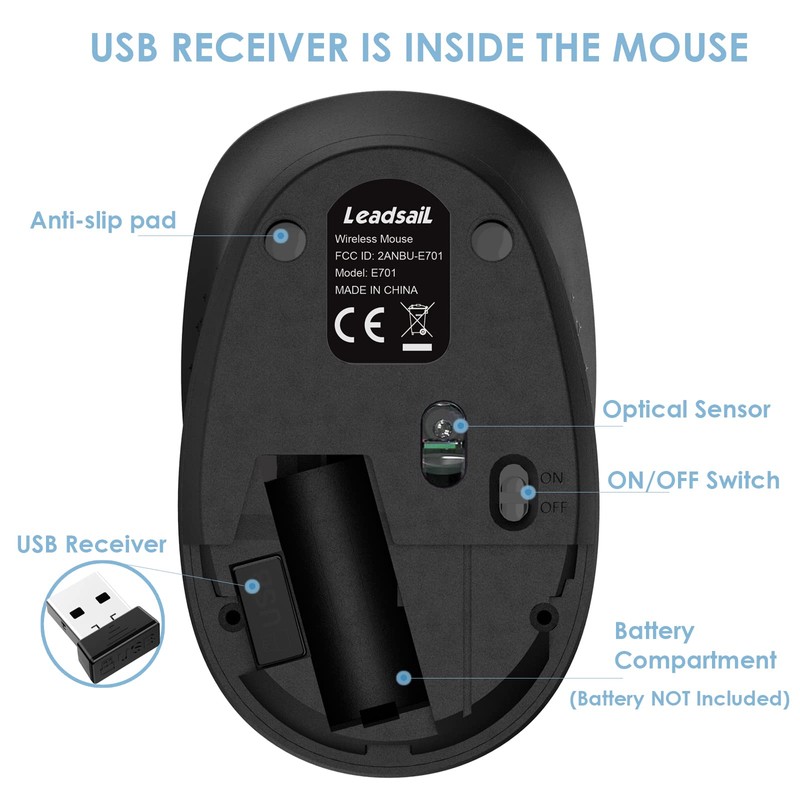 - 【Plug and Play Travel Mouse】Plug and go ready along with the Nano Receiver stored in the battery compartment, LeadsaiL USB wireless travel mouse works with Windows, Mac, Chrome OS or Linux-based computers of Notebook, PC, Laptop, Computer, Macbook.