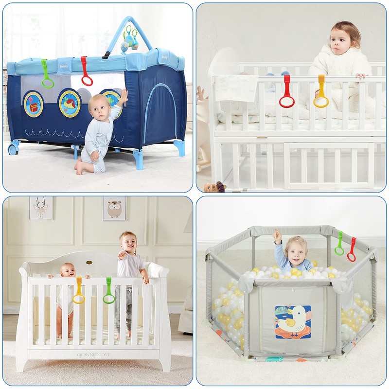 1. Removable hand rings with soft edge for standing up clothes, ideal for helping your baby get up in the cradle.