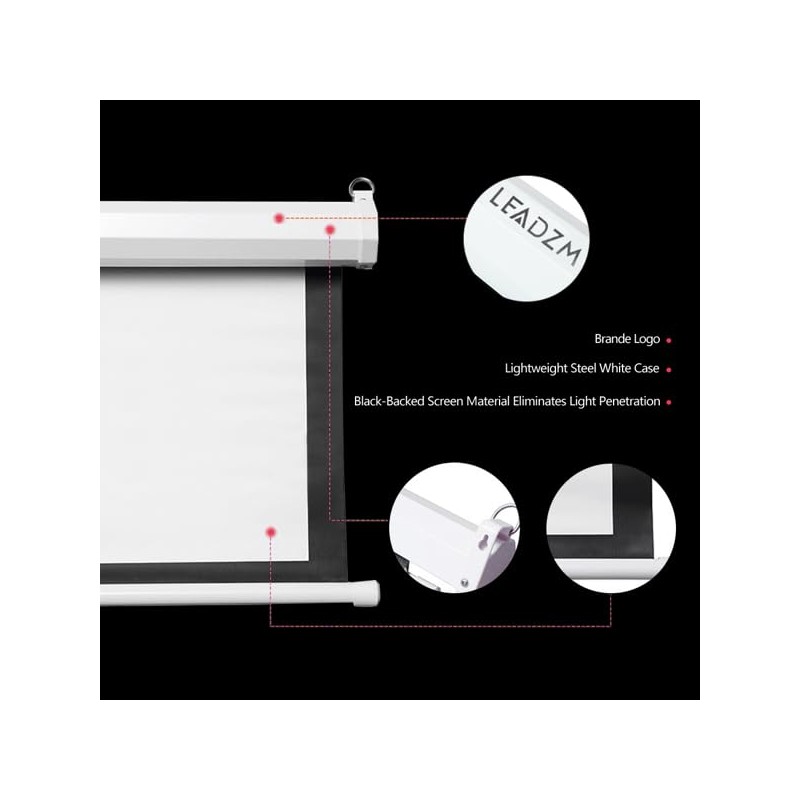 Leadzm 92" 16:9 80" x 45" Viewing Area Motorized Projector Screen with Remote Control Matte White
