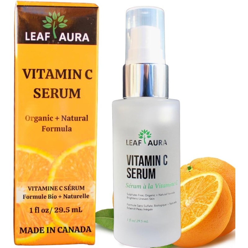 Leaf Aura Vitamin C Serum, Made with Organic+ Natural Formula, Made In Canada, 29.5ml