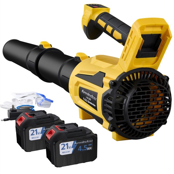 Leaf Blower Cordless with Battery and Charger, 21V Electric Cordless Leaf Blower, 2 x 4.5Ah Battery Powered Leaf Blowers, 200MPH 5-Speed Turbo Mode Handheld Blowers for Lawn Care & Garden Clearance