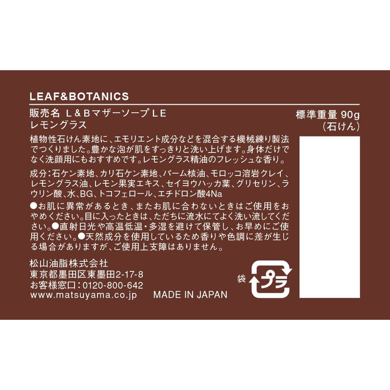 Leaf & Botanics Mother Soap, Lemongrass, 3.2 oz (90 g) x 1