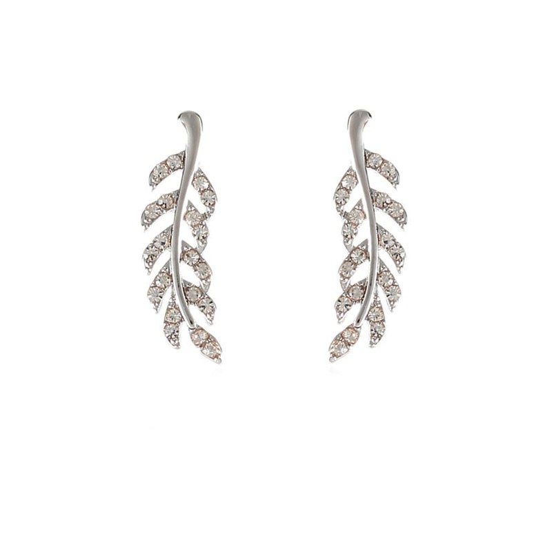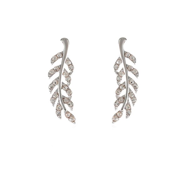 Leaf Feather Earrings Rhinestone Leaf Ear Crawler Earrings Elegant Leaf Shape Stud Earrings Women Dainty Earrings Gift (silver)