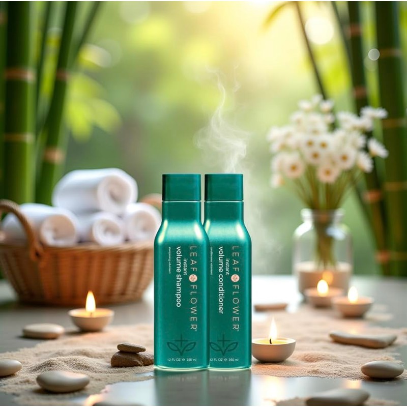 Leaf & Flower Shampoo & Conditioner 12 oz Duo Set | Necessities And Essentails Packaging (Green/Instant Volume)