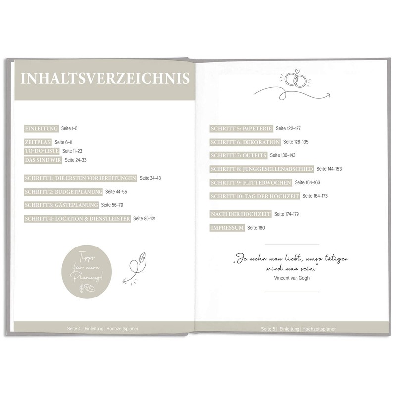 LEAF & GOLD® Wedding Planner - Lovingly designed, 180 pages, hardcover with b...
