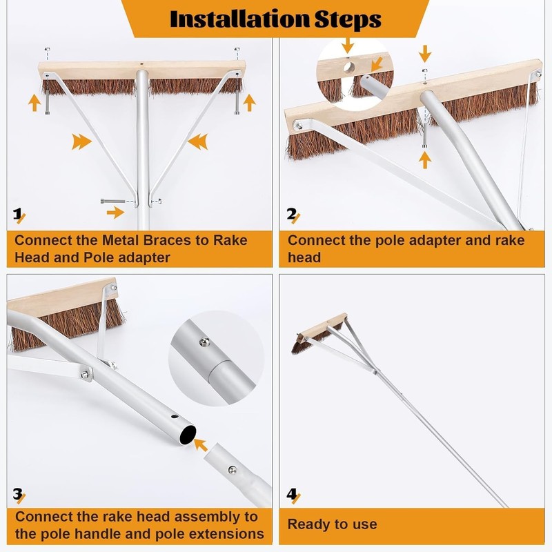 Leaf Roof Brush and Roof Rake, 21 Ft Adjustable Length Roof Cleaning Tool, Remove Roof Leaves Safely, with Natural Brush Head, Lightweight, Easy to Use & Store