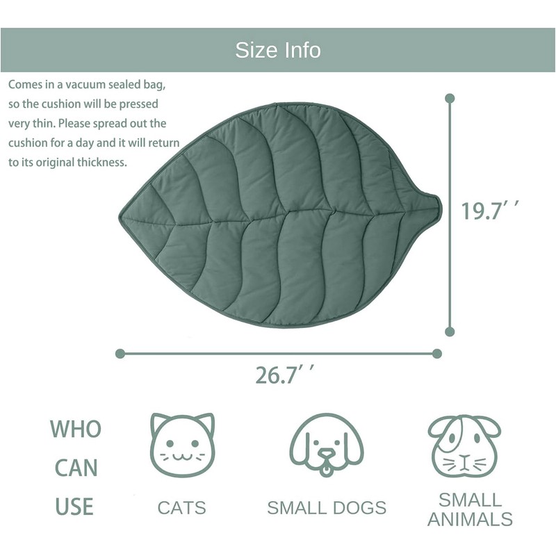 - WARM & COZY: The leaf shaped cat bed mat surface is 100% cotton with 100% down cotton filling. Down cotton has the advantages of lightness and softness, delicate touch, heat preservation, and not easy to deform, which makes the pet mat very safe and soft, and can protect the pet's skin. At the same time, our pet mat is sewn with a special process, which is non-toxic, odorless and very durable. Let your pets play safely and comfortably
