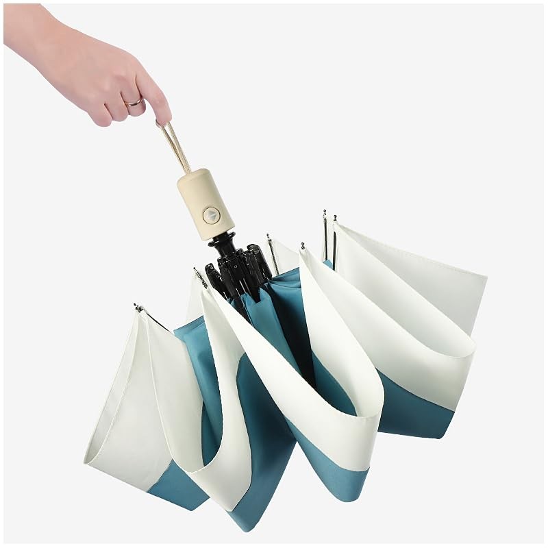 - Automatic Open and Close Folding Umbrella: The parasol can be opened and closed with a single touch, so you can use it with one hand, without any stress when you open the umbrella. It is very convenient when you get in or out of a car or when you have only one hand. Keep it in your regular commuting bag or in your car for emergency weather