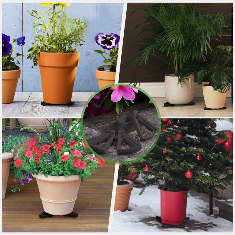 - Material: Our pot feet for outdoor planters are made of high-quality PP plastic material. They are portable and durable and can be used outdoors for a long time. These flower pot feet will provide proper drainage for all your favorite outdoor plants. The pot risers will keep your flower pots elevated, which means water can flow through your flower pots without dirtying your patio slabs, decks or tiles.