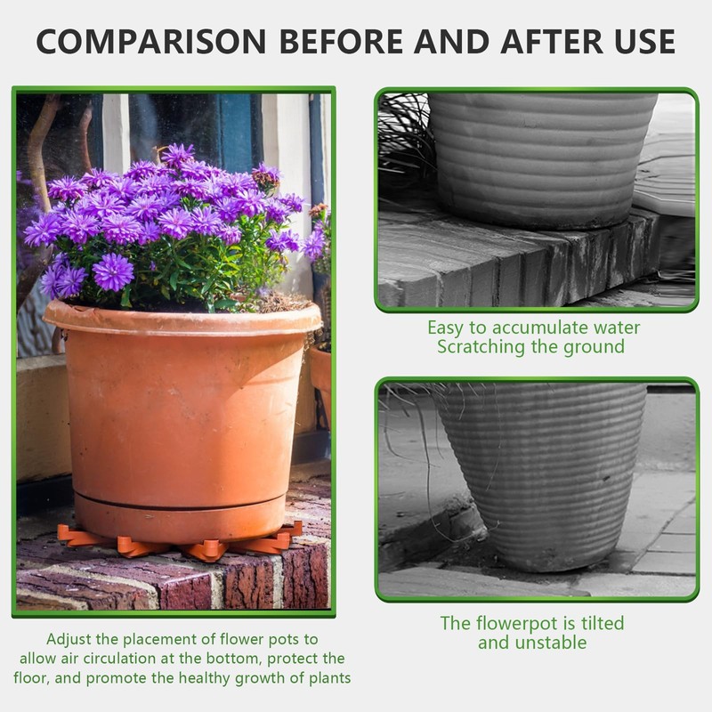 - Easy to maintain: This flower pot feet is easy to operate, simply place it under the flowerpot, and you can choose the required number of pot feet for outdoor planters according to your height needs. The additional height makes it easier for you to clean the soil sediment at the bottom of the flowerpot. Make your plants and flowers grow more vigorously.