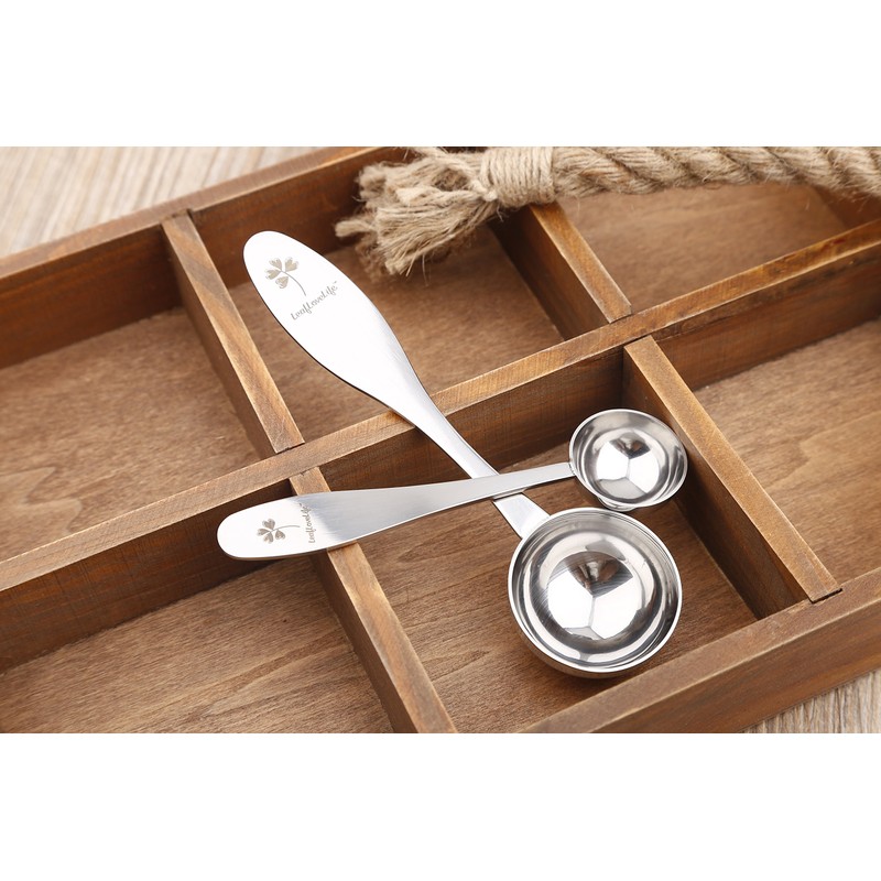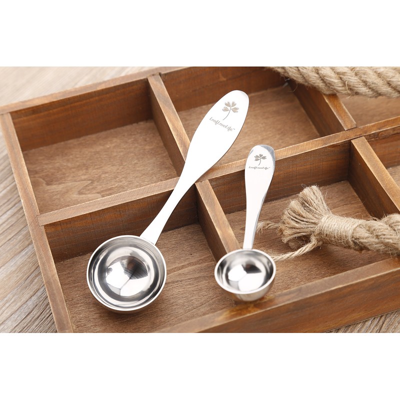 LeafLoveLife Coffee Scoop - Stainless Steel Tablespoon Measuring Coffee Scoop - Perfect For Scooping Coffee, Cocoa, Tea, Protein Powder, Spices and More - Dishwasher Safe - Pack of 2 (Medium & Large)