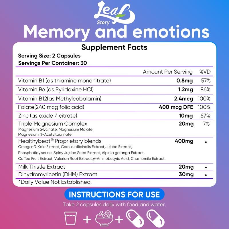 LeafStory Nootropic Brain Supplements for Memory and Focus, Cognitive Function for Mental Health & Clarity with Phosphatidylserine, Vitamin B6 B12, Folate & Dihydromyricetin, 60 Capsules-N2:_2 bottle of 120 Capsules