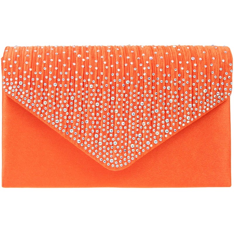 LeaHWard Diamante Clutch Purses Crystal Sparkly Beaded Handbags Prom Bridal Wedding Bag 299 (Orange)
