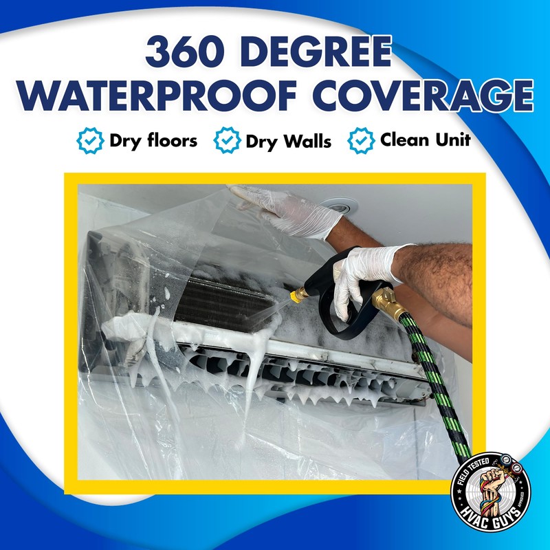 - CLEAN EASIER, BETTER, DEEPER - Our patented 360 Degree Coverage Cleaning Cover installs easily and will prevent water overspray to surrounding areas. The Mini Split Maintenance Kit allows you to clean your mini split easier and deeper to restore peak efficiency and indoor air quality.