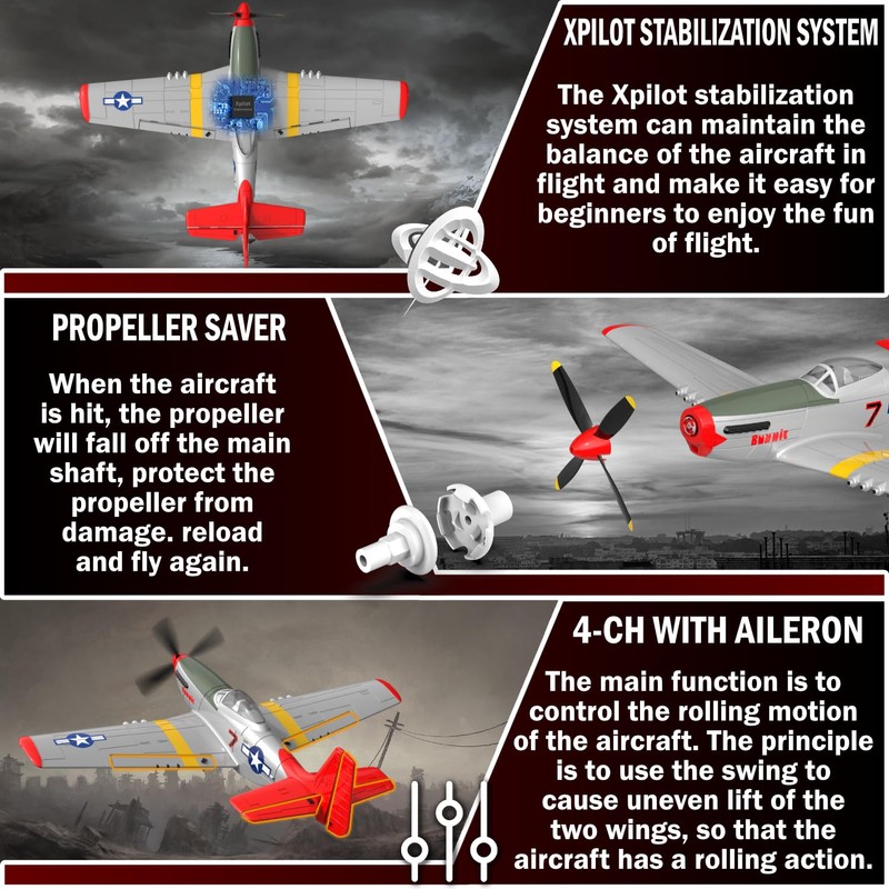 - FLIGHT STABILITY AND EASY TO FIY: The P51 Mustang remote-controlled aircraft is made of lightweight elastomer foam and can fly in outdoors. Enough light and high flexibility material make the RC plane easy to fly