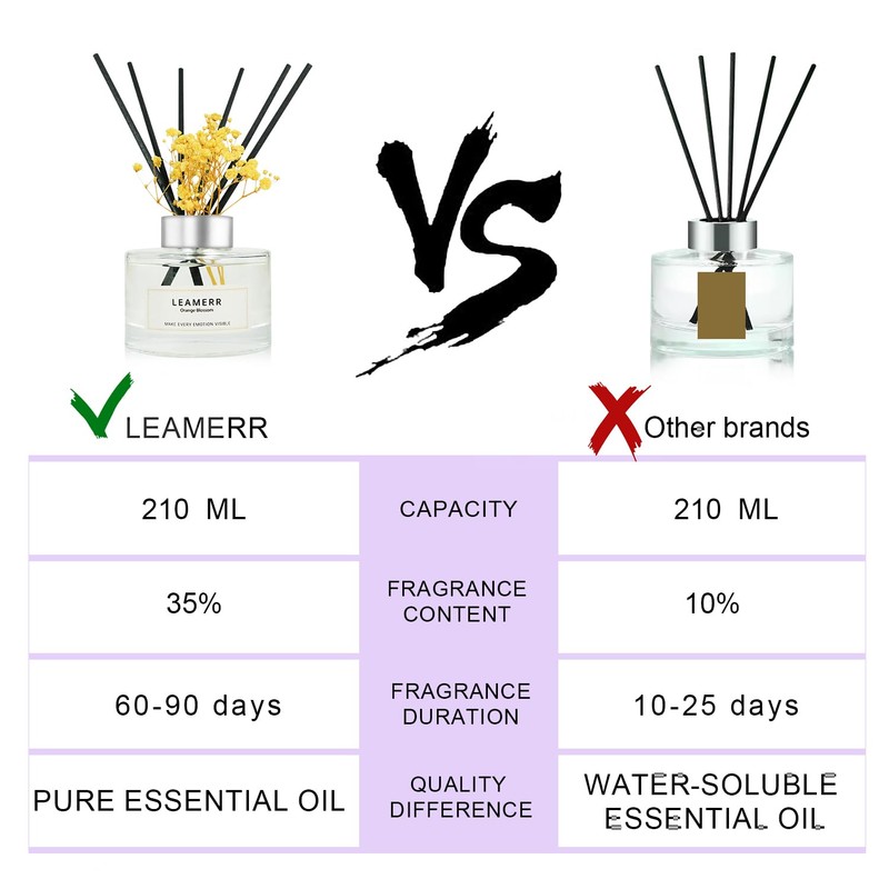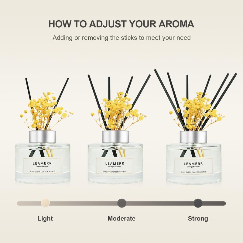 Elevate your home's ambiance with the LEAMERR Reed Diffuser. This elegant diffuser combines the refreshing fragrance of orange blossoms with stylish decor. The sleek glass bottle and black reeds create a sophisticated look that complements any interior design. Simply insert the reeds into the fragrant oil and let the aroma gently fill the air, creating a welcoming and inviting atmosphere. With its long-lasting scent, the LEAMERR Reed Diffuser offers a convenient way to enjoy a delightful fragrance throughout your living spaces. Enhance your surroundings with the subtle yet captivating essence of orange blossoms.