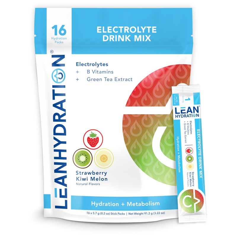 LEAN Hydration Daily Natural Electrolyte Packets Drink Mix | Zero Calories, Zero Sugar plus Vitamins, Minerals & More | 16 ct (Strawberry Kiwi Melon)