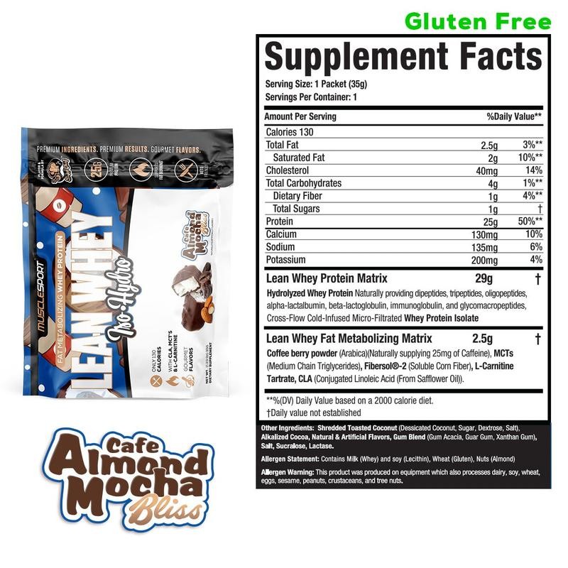 Lean Whey® Single Serve Packets by MuscleSport offer a convenient and delicious way to fuel your body with high-quality protein anytime, anywhere. Each packet contains a lean, low-carb whey protein formula designed to support muscle recovery, fat metabolism, and lean muscle growth. Fortified with digestive enzymes and metabolism-supporting compounds, it’s ideal for post-workout recovery or as a healthy meal replacement. These single-serve packs are perfect for travel, gym bags, or on-the-go lifestyles. With incredible flavor and smooth mixability, Lean Whey® delivers both taste and performance in one easy serving. Support your fitness goals without compromising convenience.