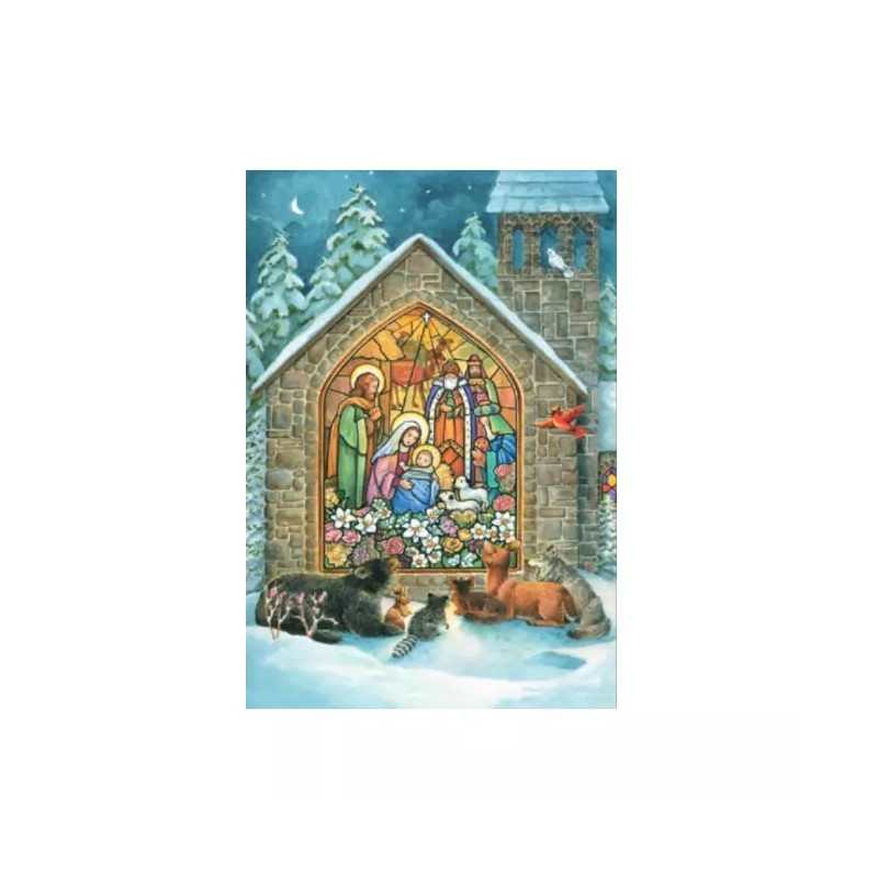 Leanin’ Tree Nativity Stained Glass Christmas Cards (Pack of 10) Religious Holiday Greeting