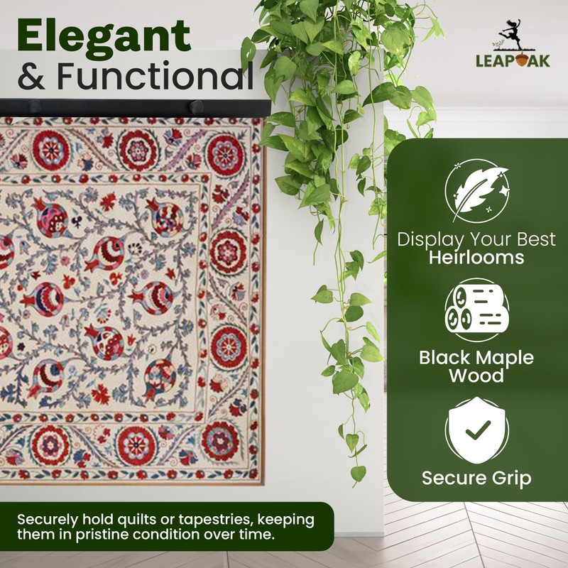 - Perfect Display Solution: Showcase quilts, tapestries, or rugs up to 48 inches wide with our premium black maple wood quilt hanger for wall display.