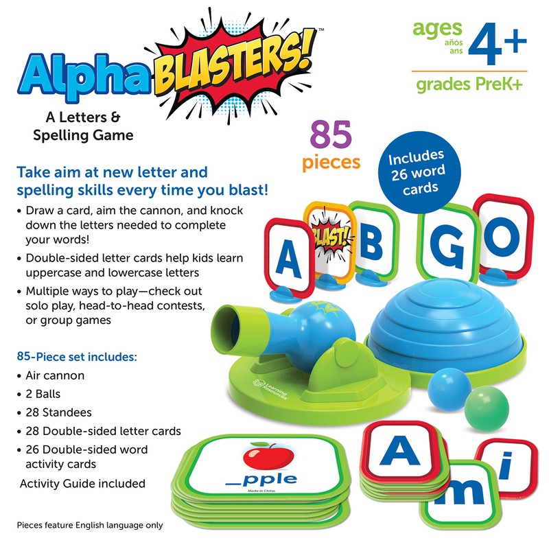 - AGES AND STAGES: Specially designed with little ones in mind, Alphablasters! Letter & Spelling Game is an educational toy for 4 year olds that builds school-ready language skills