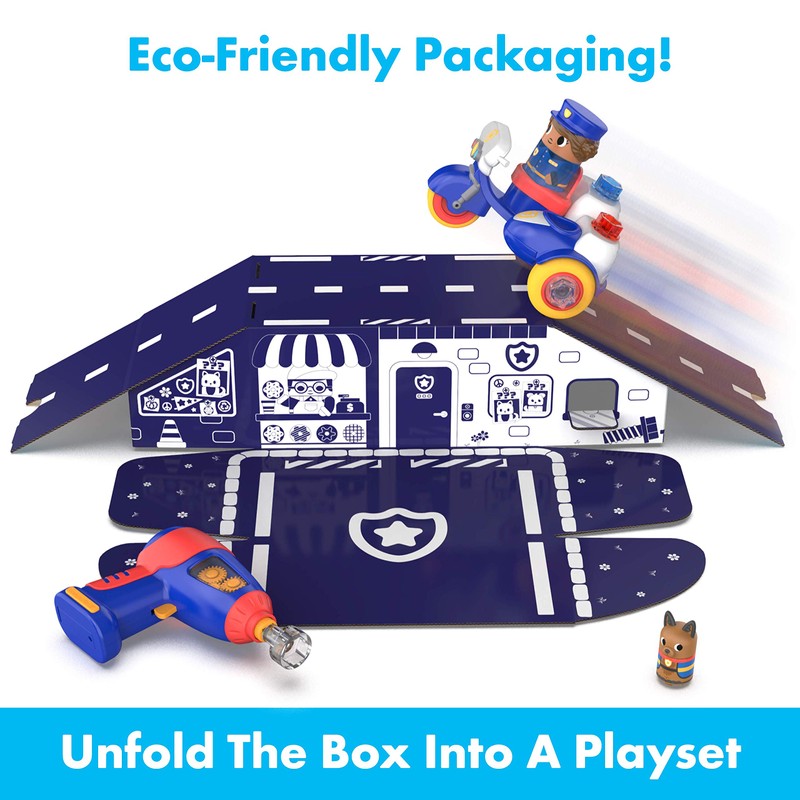 - ECO-FRIENDLY PACKAGING: Don't throw the box away, it's part of the play; Bolt Buddies packages unfold to become fun play sets, one simple step toward being sustainable and eco-friendly