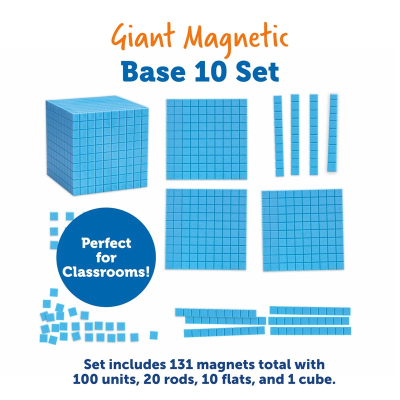 Learning Resources Giant Magnetic Base Ten, Magnetic Base Ten, Use with Magnetic Surfaces or Whiteboards, 131 Piece Set