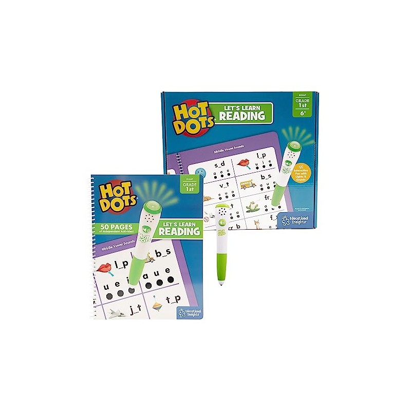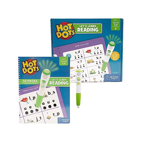 Learning Resources Hot Dots Let's Learn Reading 1st Grade, Activity Book & Interactive Pen with Instant Feedback, Over 100 Activities, Ages 6+
