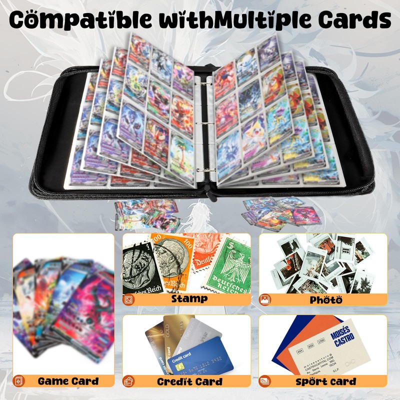 - Universal Card Compatibility : Fits most standard collectible cards (9.1cm x 6.7cm pockets), including trading cards, gaming cards, ID cards, and membership cards. The zip closure keeps cards safe during travel or home storage.