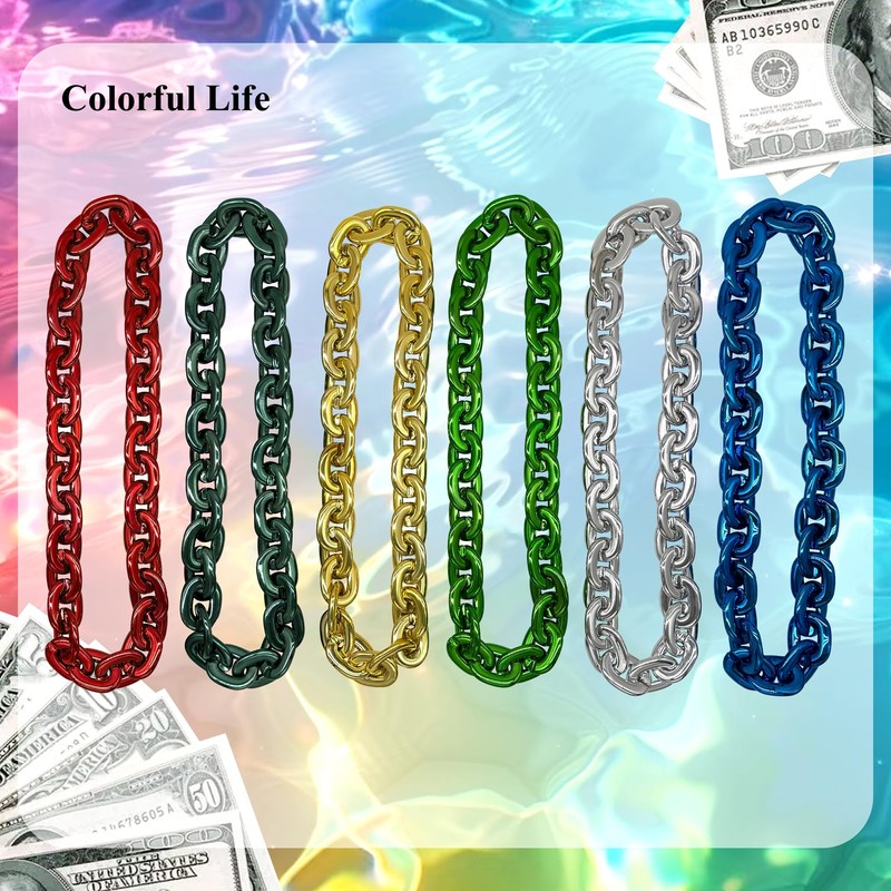 - CHAIN STRUCTURE: Substantial interlocking oval plastic gold chains create a secure and durable connection throughout the necklace