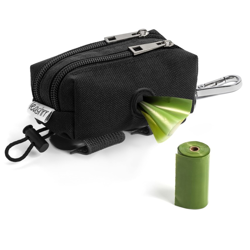 Leashrr 2.0 Dog Poop Bag Holder for Leashes - Dog Poop Bag Dispenser and Treat Holder with 2 Waterproof Pouches for Pet Waste Bags and Walking Accessories + 1 Free Roll - Leashrr 2.0 (Black)