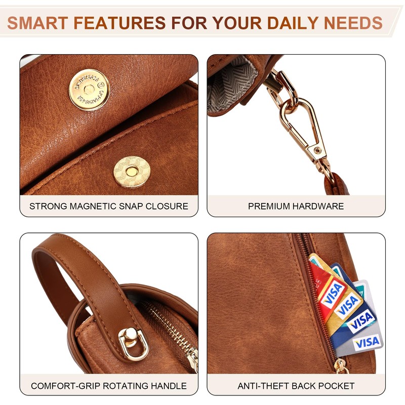 - VERSATILE 3-IN-1 BAG FOR WOMEN: Rotating top handle converts from cross body/shoulder bag to hand carry. Perfectly combined and upgraded the design of mobile phone bag and crossbody/shoulder bag