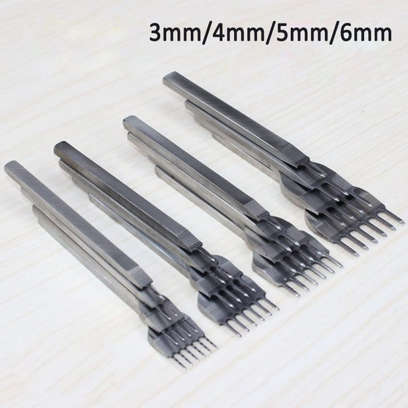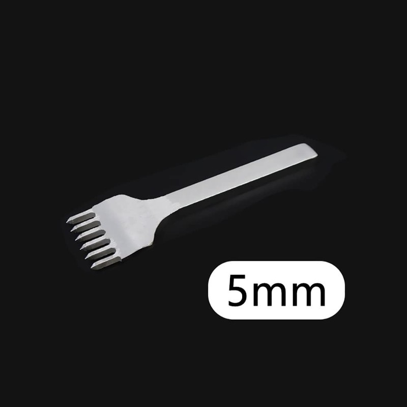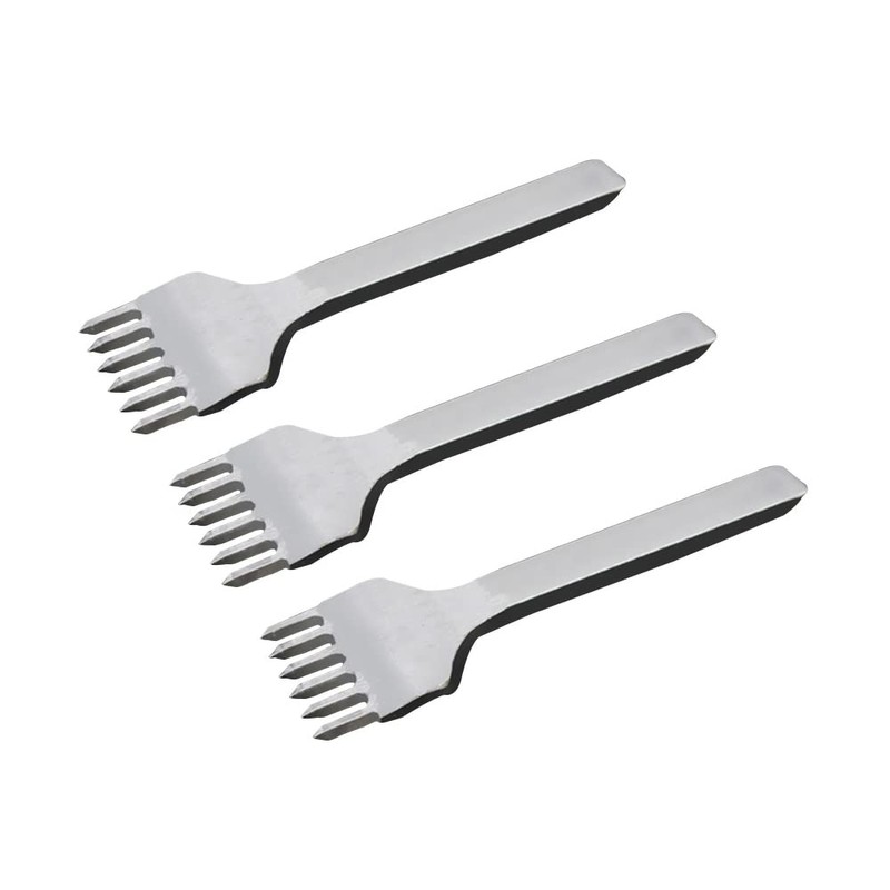 Leather Chisel Set 3 Pieces 6 Prong Steel Leather Craft Row Hole Punch for DIY Leather Craft - 5mm