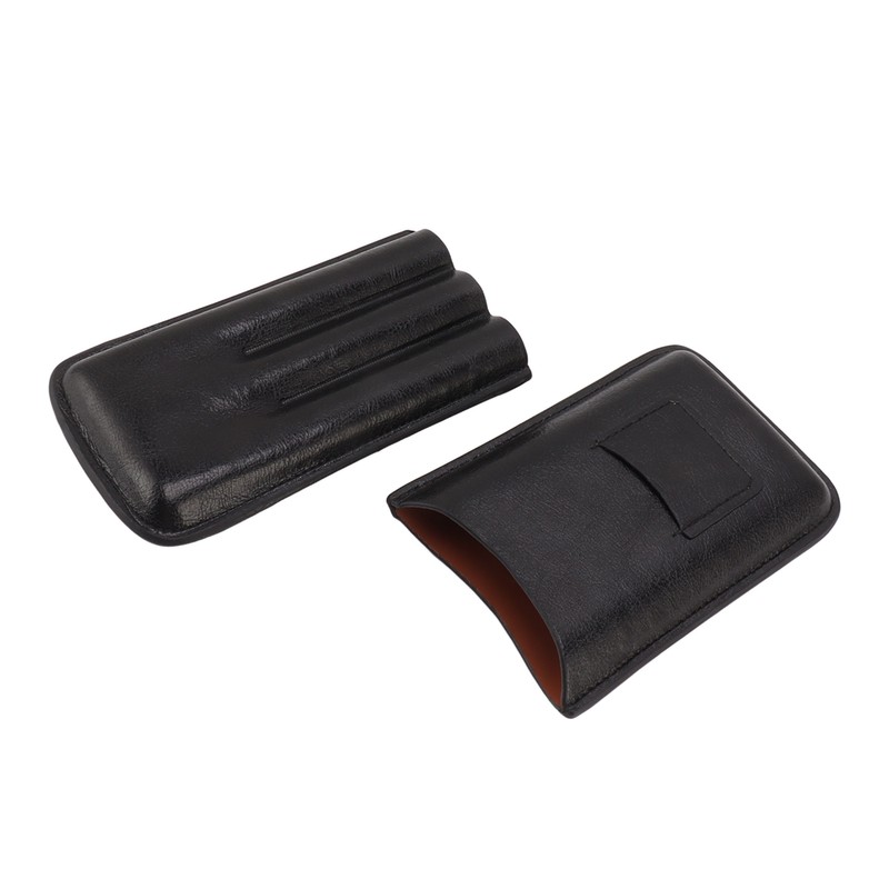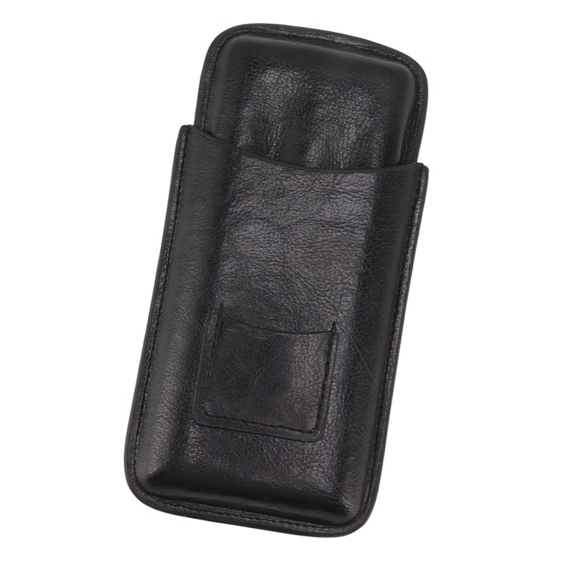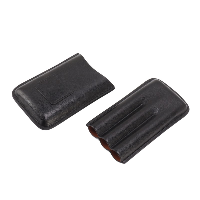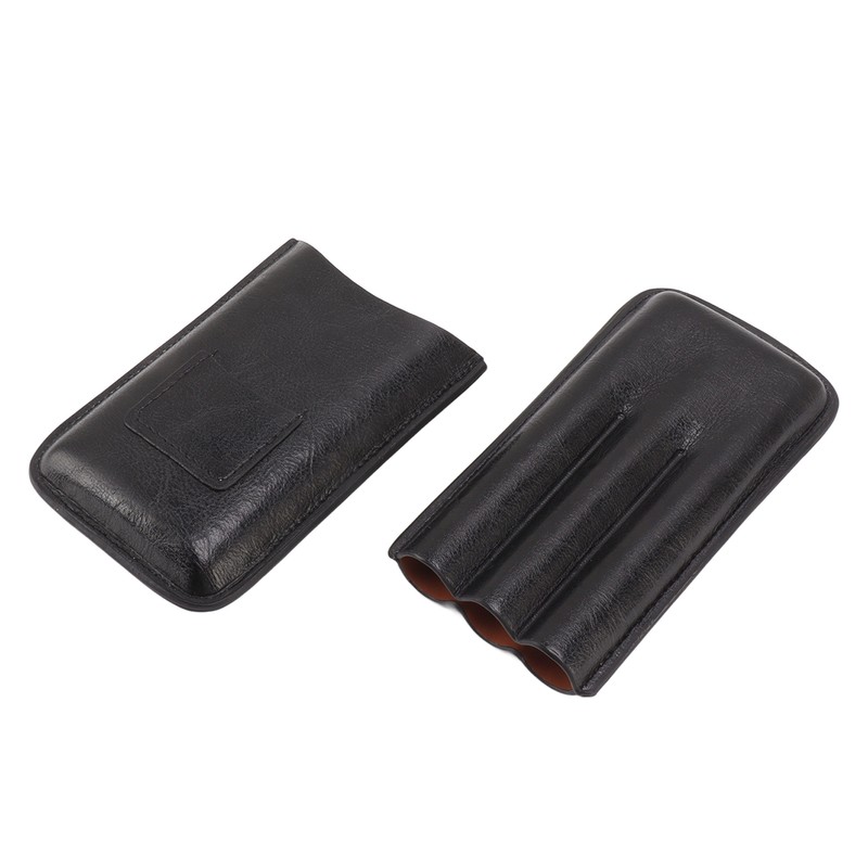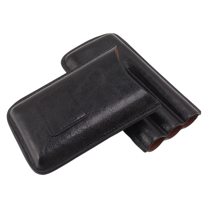 Leather Cigar Case Portable 3 Finger Cigar Humidor Carrying Case with Cutter Pocket for Cigar Lovers Black
