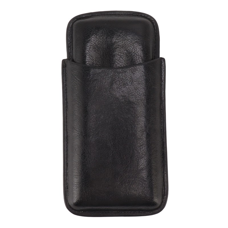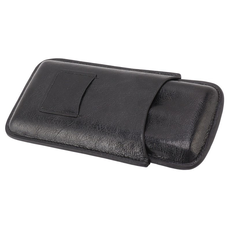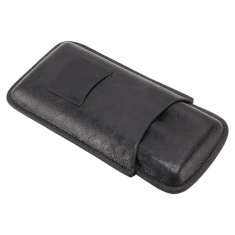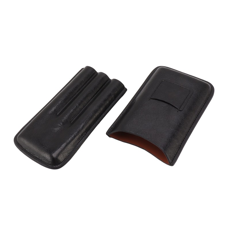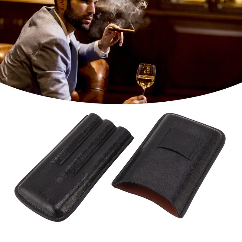 Leather Cigar Case Portable 3 Finger Cigar Humidor Carrying Case with Cutter Pocket for Cigar Lovers Black