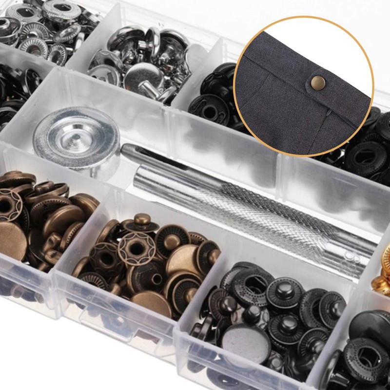 Leather Craft Spring Hook Tool Snap Button Caulking Set of 120 with Storage Case Caulking Tool Set Snap Fastener Hook Tool Parts DIY Handmade Handmade