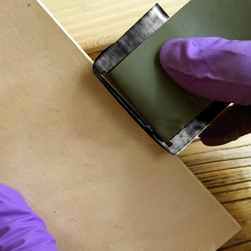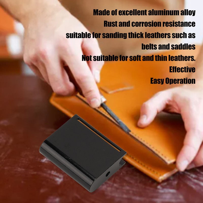 1、Aluminum Alloy: Made of excellent aluminum alloy, this leather edge polishing tool is rust and corrosion resistant. 2、Main Application: This leather edge polishing tool is mainly used for leather edge polishing to re glow the leather appearance. 3、Scope of Application: This leather polishing tool is suitable for sanding thick leathers such as belts and saddles, but not for soft and thin leathers. 4、Easy Operation: Hold the tool and fix the sandpaper, put the leather edge into the groove and sand it. Effective and convenient to use. 5、Easy Carrying: This polishing tool has a compact size and light weight, which makes it convenient for you to take with you. You can use it whenever you want.