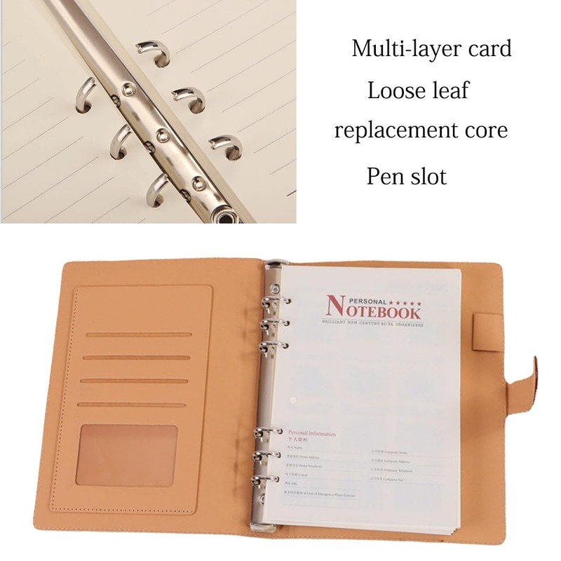 Product Include: The A5 binder set includes 1pcs 6-ring binder PU leather cover, 100 sheets of lined paper, In addition, add a replacement to pack one for easy replacement use.