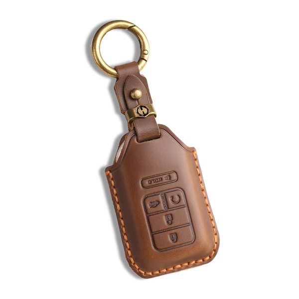 Leather Key Fob Cover with Keychain Compatible with 2016-2022 Honda Accord Civic CRV Pilot Ridgeline Passport (BROWN)
