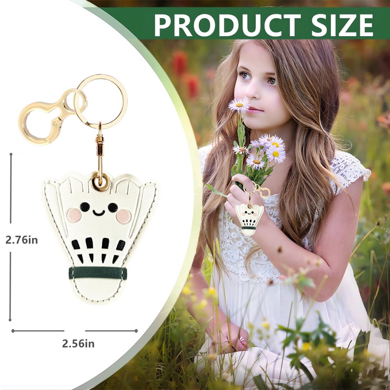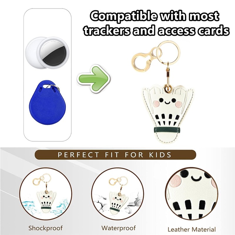 Leather Keychain Holder Case Compatible with AirTag,Cute Protective Cover with Keyring,Anti-Scratch Finder GPS Tracker Case for Wallet Keys,Bag,Pets(Badminton)