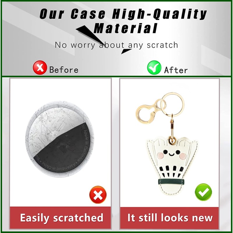 - High-quality:Our compatible with AirTag keychain is made of high-quality PU leather, with a soft leather that is resistant to splashing, scratching, and skidding, protecting the air tag from impact, falling, and scratching.Cartoon elements are very cute,It fits so perfect for AirTag and one wouldn’t even know because it looks like a regular key chain