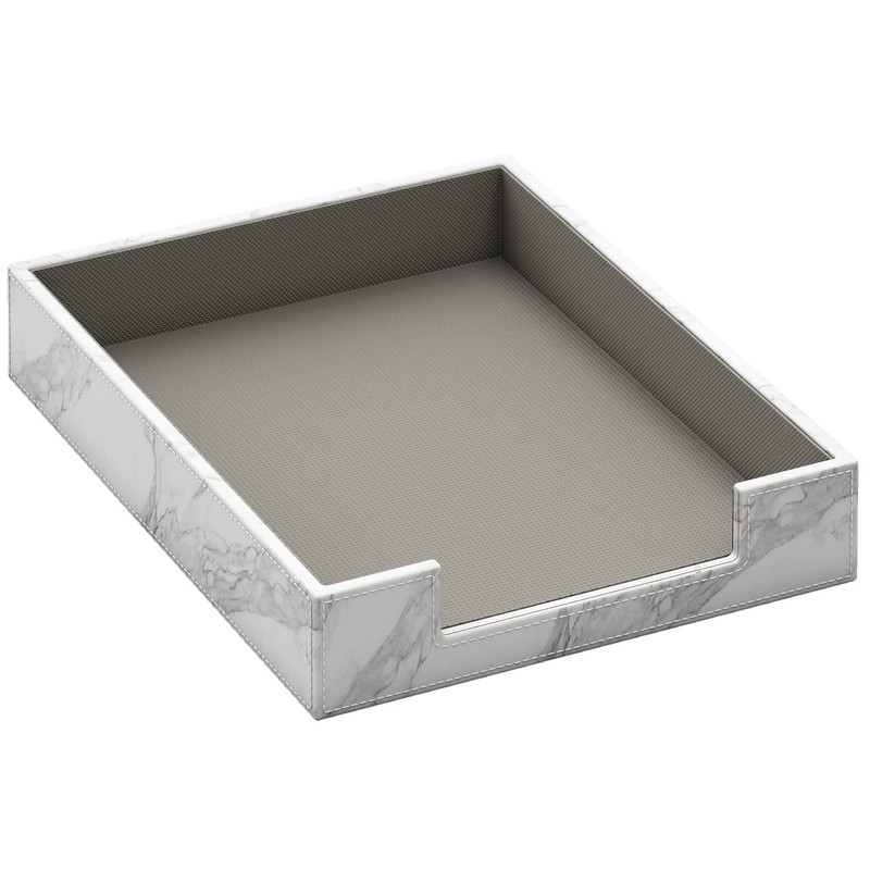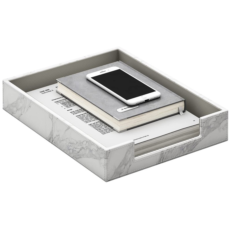 Leather Letter Tray, THIPOTEN Elegant Desk Organizer for Office Supplies, Mail, Paper, File, Magazine, Perfect Office Organization for Desktop(White)