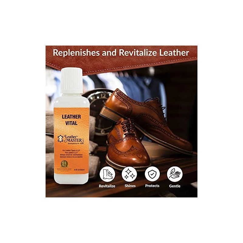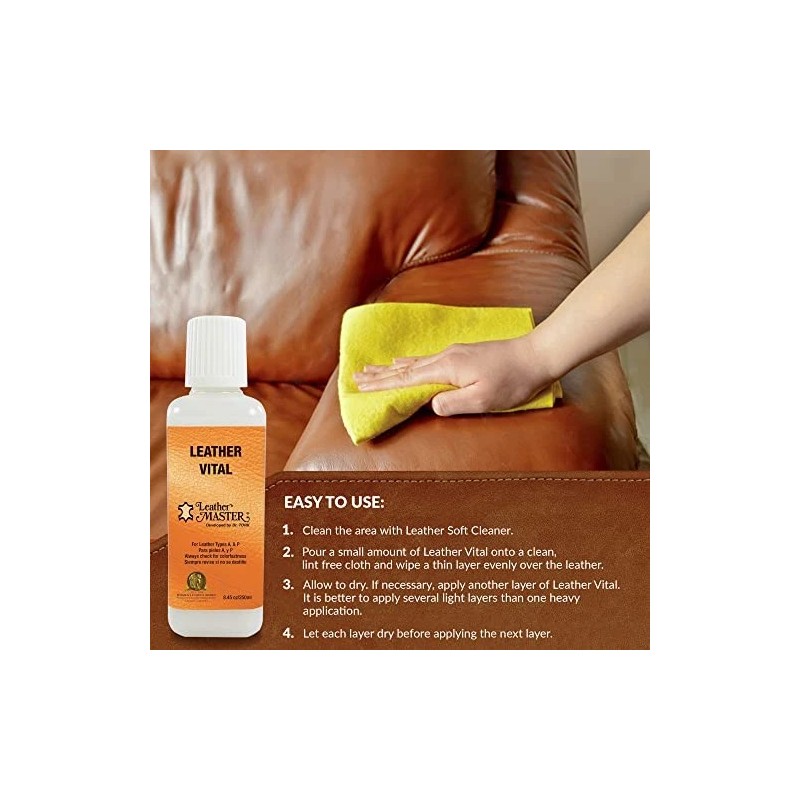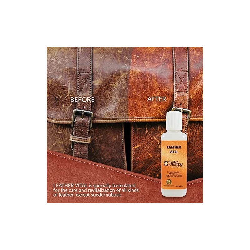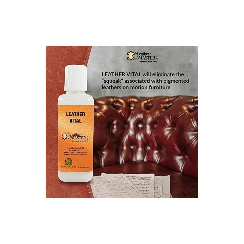 - LEATHER VITAL: These products work hard to soften and restore leathers look and feel. Stop squeaky leather - on - leather surface noise, improve dye recoloring, to restore old stiff leather. Not recommended for Nubuck or Suede