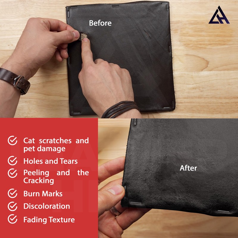 - Leather Hole Repair: Effectively fills and repairs holes up to 3"x3" in leather furniture, car seats, jackets, bags, and more using the filling paste and hole filler material.