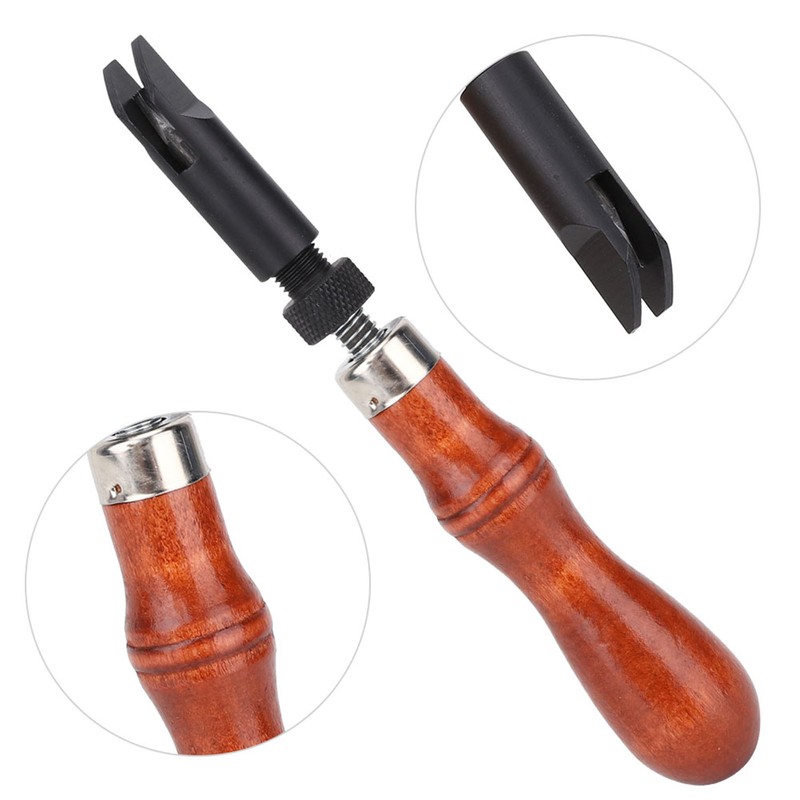 1、Made of high carbon steel and high quality wood, the American type groover is of exquisite workmanship, this is a very good V-shaped groover. 2、American V-type groover can adjust the length of the cutter head to excavate different depth grooves; after mastering, the groove is beautiful and quick. 3、The internal V-shaped retractable cutter head controls the width of the groove, the telescopic wheel controls the expansion of the cutter head, and the cutter head can retract the groove of different width. 4、The rotating thread is used to adjust the depth of the pushing groove. When the rotation is tightest, the leather surface pushed by the pushing groove is the loosest, and the groove of the pushing leather surface is the shallowest. 5、The knife edge is sharped, the quenching hardness of the steel is high, and the groove is smooth.