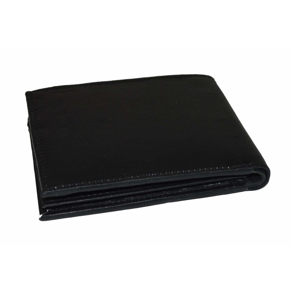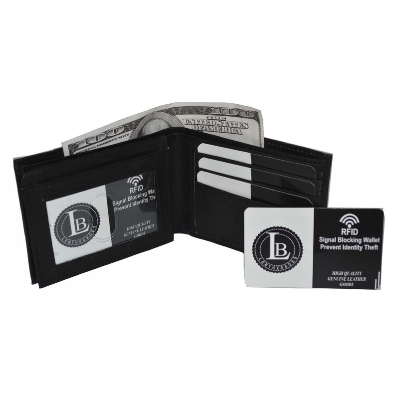 Leatherboss Genuine Leather RFID Blocking Men's Bifold Wallet with a Flap and 2 ID Window, Black