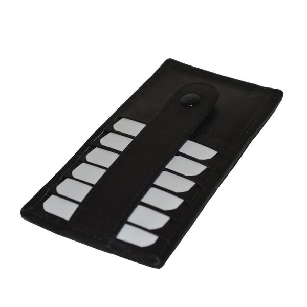 Leatherboss Genuine Leather Women's All in One Credit Business Card Case Holder Slim Zipper Wallet With a Card Protection Strap on both sides, Black