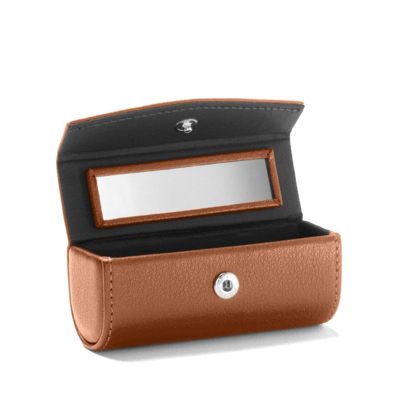 For the woman who loves a good lipstick. This structured leather lipstick case will keep your favorite tube protected in your bag while you take on the day. Need to touch up? This case has a small mirror attached to the inside flap so you can re-apply with ease. Perfect as a gift for your best girlfriend, or as a treat to yourself, this will make sure your favorite lipstick is always at hand. Our Timeless leather features a finely grained texture and buttery soft hand feel. Unlike our Classico collection which focuses on bright, fun colors; the Timeless collection highlights classic colors that never go out of style. Whether you want something polished and professional or want to wear a versatile color that goes with everything, our Timeless leathers are sure to please. Please note: textures in this collection range from fine grain to a lightly pebbled grain depending on which part of the hide it's from. This variation in grain is a highlight of full grain leather, as it shows that the top leather texture in its purest form. Care: Spot clean with a damp cloth. Use our leather cleaner and conditioner to maintain your leather’s beautiful texture and softness.