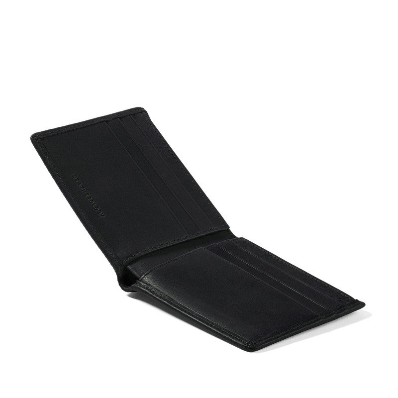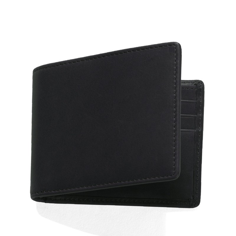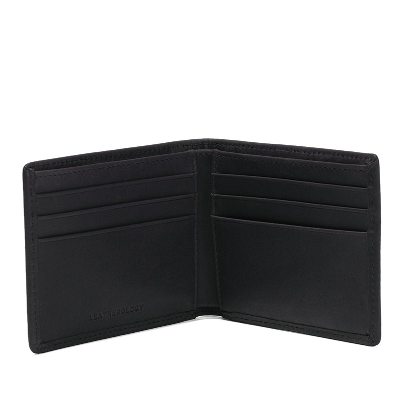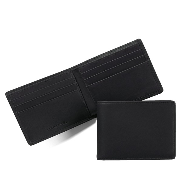 Leatherology Premium Black Oil Thin Bifold Wallet - 6 credit card slots, single bill compartment, 2 interior pockets for added storage