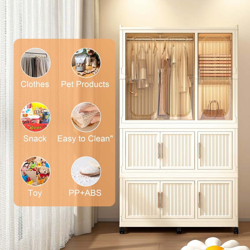 - 【Safe & Durable Design】 Crafted from eco-friendly PP & ABS materials, its sturdy structure is built to endure wear and tear, resisting deformation while maintaining stability. The side buckles enhance security, preventing the wardrobe from tipping over, while the magnetic door closure ensures the doors stay shut.